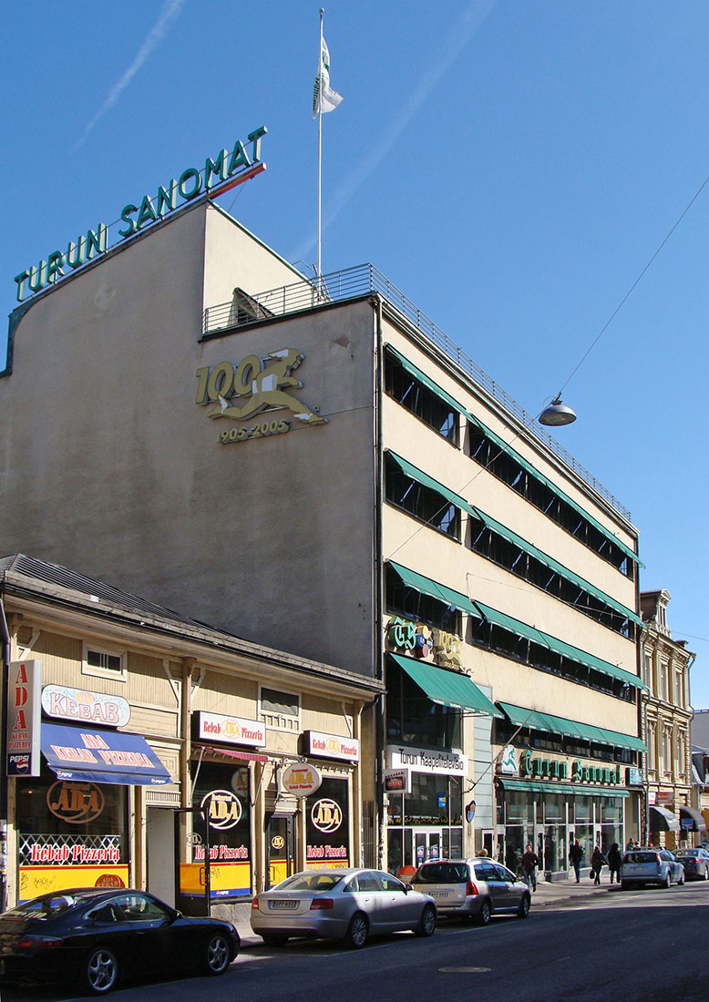 Alvar Aalto started design work for this building, which is located in a commercial area of Turku, in January 1928. Already on June 15 the same year he signed a complete set of drawings in 1:100 scale. Reworking of the design and elaboration of detail drawings continued up to July 1929. The construction is integrated into a block of buildings. It is realized as a reinforced concrete frame structure, with expanded concrete used for the exterior walls. The cavernous surface of the expanded concrete was treated with protective layers.
