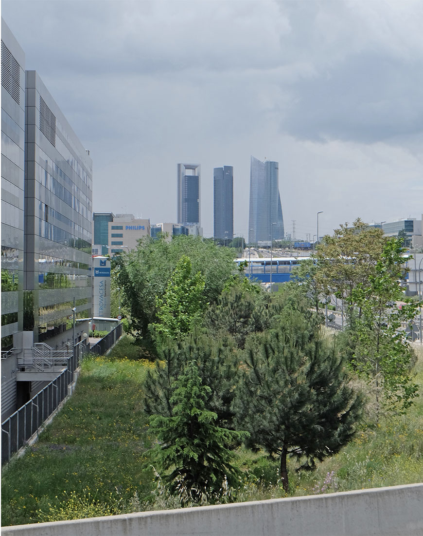Torre Cepsa was originally built as a landmark headquarters for Caja Madrid, Spain’s oldest savings bank – its subsequent transfer to oil company, Cepsa demonstrates the flexibility of its office accommodation. The tower’s design continues the practice’s investigations into the environmentally sensitive, uplifting workplace, which can be traced through the design of a family of office towers, most notably for the Commerzbank, Swiss Re and the Hearst Corporation. The fifty-five-storey tower is located on the site of the former Real Madrid training grounds, where the Madrid city council assigned sites for four new towers, to be designed by leading international architects. Torre Cepsa is the tallest of this group. It marks a curve in the wide boulevard of the Paseo de la Castellana – the ‘backbone’ of Madrid – and is carefully positioned to maximise the exceptional qualities of its site. Compositionally, the building can be thought of as a tall arch, with the services and circulation cores framing the office floors. At ground level, a 22-metre-high glazed atrium provides the transition from the street, and accommodates a ‘floating’ glass-walled auditorium set into a mezzanine. At the top of the building, the void beneath the uppermost section of the ‘portal’ frame is designed to house wind turbines, which are capable of providing a significant proportion of the building’s power supply. Although the building was conceived as a corporate headquarters, it also has the flexibility to be partly sub-let if required, enabling Cepsa to expand or contract its accommodation easily in the future. This degree of adaptability results in part from pushing the service cores to the edges of the plan – a strategy pioneered in the design of the Hongkong and Shanghai Bank – to create 1,200-square-metre floor plates. The north-south orientation maximises natural shade by directing the low-angle sunlight towards the cores, a move that has the added benefit of framing spectacular views of the hills of Sierra de Guadarrama to the north and the centre of Madrid to the south. Strategies such as triple-glazing the office facades further improve the building’s energy efficiency. (Text: Foster + Partners) |