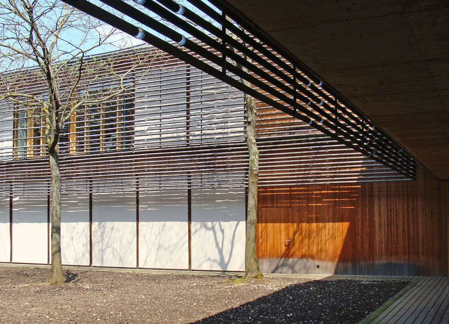 The client’s express wish, from the beginning, was not to have the new REHAB centre look or feel like a hospital. So, what were we not supposed to do? What is a hospital? Elevators and indoor corridors flanked by countless doors leading to rooms or examination rooms a waiting lounge at the end of the hall or next to the elevator. The same pattern repeated on as many floors as permitted by zoning regulations - an economic solution because it is repetitive to the extreme, and requires no modification of staff behavior. A rehabilitation centre is a place where people live for up to 18 months, usually after an accident. It is a place where they learn to cope with their changed lives in order to become as independent as possible again. During the day they work with therapists and doctors; they live there and spend their free time there, they meet their families and friends. They have a daily routine just as we do, but with one significant difference: everything happens in one place. Because the patients are so restricted, because they have to stay at the REHAB centre for such a long time, we have set ourselves the task of designing a multifunctional, diversified building, almost like a small town with streets, plazas, gardens, public facilities, and more secluded residential quarters where people take different paths to move from A to B. We have tried to create surroundings that allow the patients as much autonomy as possible. The new REHAB centre is a horizontal building on two floors, in which wheelchair users and pedestrians can easily move from one place to another: therapy and medical facilities are on the ground floor; the patients’ rooms on the second floor. The connection between indoor and outdoor spaces was our primary architectural concern. The complex is conceived from inside out: instead of an arrangement of structures, courtyards are placed in a large rectangle. They serve as orientation and allow daylight to penetrate the entire interior. Only then did we proceed with the development of the individual rooms. In keeping with the analogy of a town plan, we thought in terms of streets and plazas in front of houses. This is still the first impression of the REHAB centre today; you walk in through a large courtyard, the centre of which is a cultivated field. In other words, you enter the complex through an outdoor space. From the main lobby, various inner courtyards provide orientation: one is filled with water, another is clad entirely in wood, the bathhouse is placed in the third, etc. You proceed along them until you reach your destination. When you have arrived, you realize that the "houses" vary considerably; places like the gym or the workshops, as well as the patients' rooms are defined by large windowpanes and views of the landscape, with a seamless transition between inside and outside. Other rooms, however, are entirely inwards in orientation; the most obvious example is the bathhouse, placed in one of the central courtyards like an erratic block wrapped in black rubber. Numerous small round holes in the low-slung roof make what looks spectacular from the outside very intimate from within. In the painting workshop and library, both on the roof, the view into the distance is staged: one can look back into the city or out into the expanses of the Alsace.The diversified design offers patients and their relatives a building that does justice to the complexity of their needs. There are places where one can retreat and be alone and others in which to enjoy company. And there are also non-territorial places that are not assigned to a specific function, small places for the times in between treatments, for conversation with relatives, or for staff members during their breaks. The REHAB is an open, permeable, breathing building. Wood of different kinds and uses is the predominant material on the façades and inside. One might speak of a kind of pavilion or garden architecture, beginning with the continuous terraces along the rooms on the second floor. Delicate structures of wooden rods, horizontally interwoven in some places, vertically inserted into the ground in others, guide cloth awnings or function as screens to provide privacy. The plexiglas dowels that link these wooden rods glisten like beads when light falls on them.These beads have a big sister in the patients’ rooms; in the middle of the curved, hollow ceiling, there is a transparent plastic sphere two meters in diameter. Somewhat like the eye of the room, it offers patients laying in bed a view of the sky. And it makes the room, despite its wide veranda, so bright that one almost feels as if one is outside. The veranda has been made wide enough to wheel patients lying in bed outdoors in good weather.After the existing REHAB centre to the south is demolished, landscape architect August Künzel - with whom we have already collaborated on the design of interior courtyards - will supervise the planting of kitchen and ornamental gardens there and to the west. These gardens aim to integrate the REHAB centre into the surrounding countryside with its family gardens. To the north, a playing field and a training course are available to wheelchair users in the summer. (Text: Herzog de Meuron) |